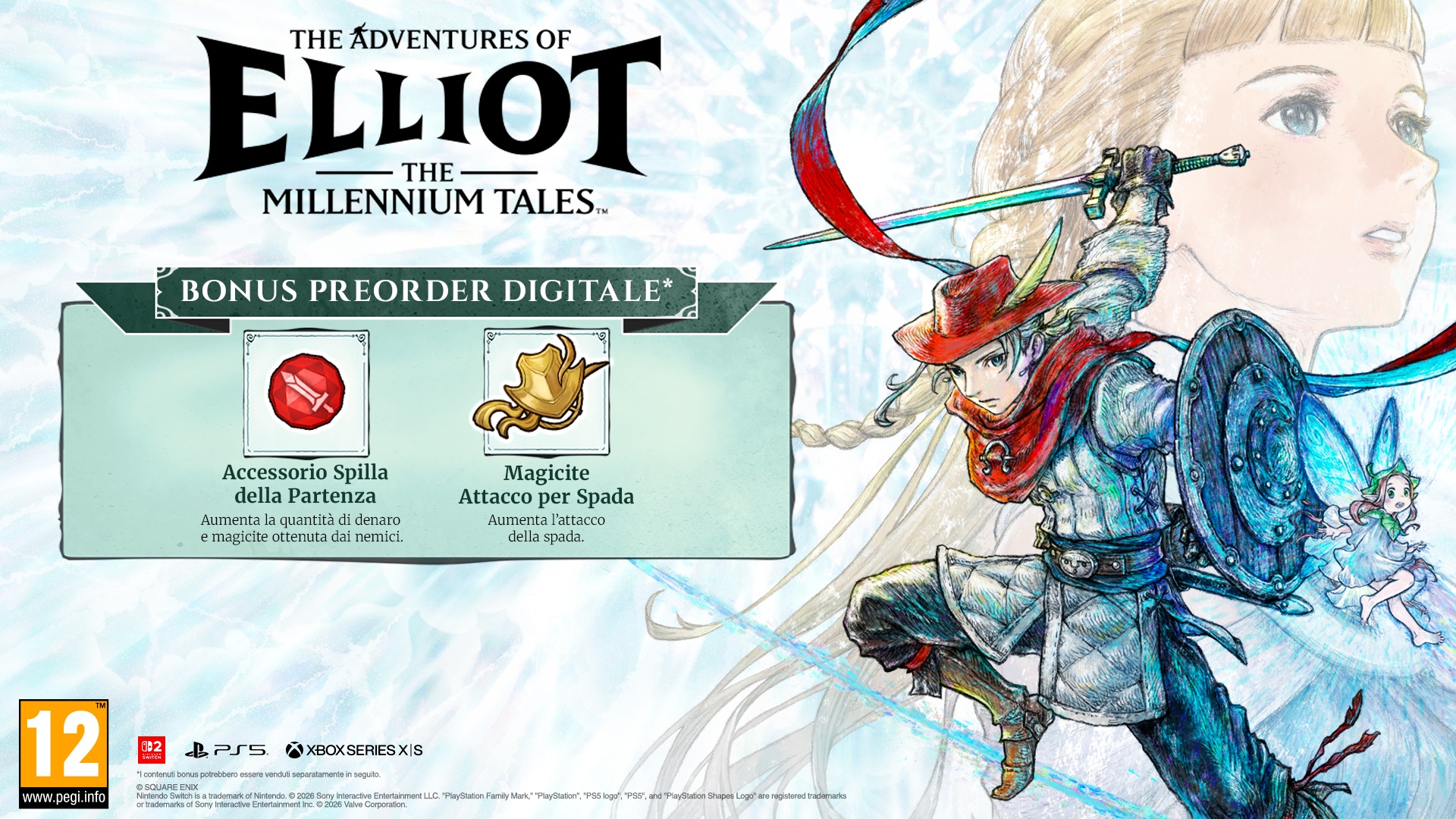 Un nuovo action RPG realizzato dai creatori di OCTOPATH TRAVELER e BRAVELY DEFAULT. The Adventures of Elliot: The Millennium Tales offre una narrazione intensa, un’esplorazione profonda, un articolato sistema di personalizzazione e combattimenti action in tempo reale. L’avventuriero Elliot e la sua compagna fatata Faie intraprendono un viaggio attraverso quattro epoche per portare a compimento una missione che attraversa mille anni di storia. Affronta battaglie action intuitive e appaganti, sfruttando le abilità di supporto strategiche di Faie, mentre sveli la misteriosa storia di questo mondo.