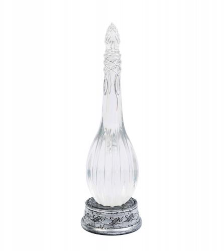 Lampada in PVC. Include una modalità di illuminazione a LED a luce bianca calda, controllabile tramite un pulsante sulla base. Funziona con un cavo USB Type-C 5V DC 1A (incluso e rimovibile) o con 3 batterie AAA da 1,5V (non incluse). Dimensioni: 19 x 22 x 10 cm.