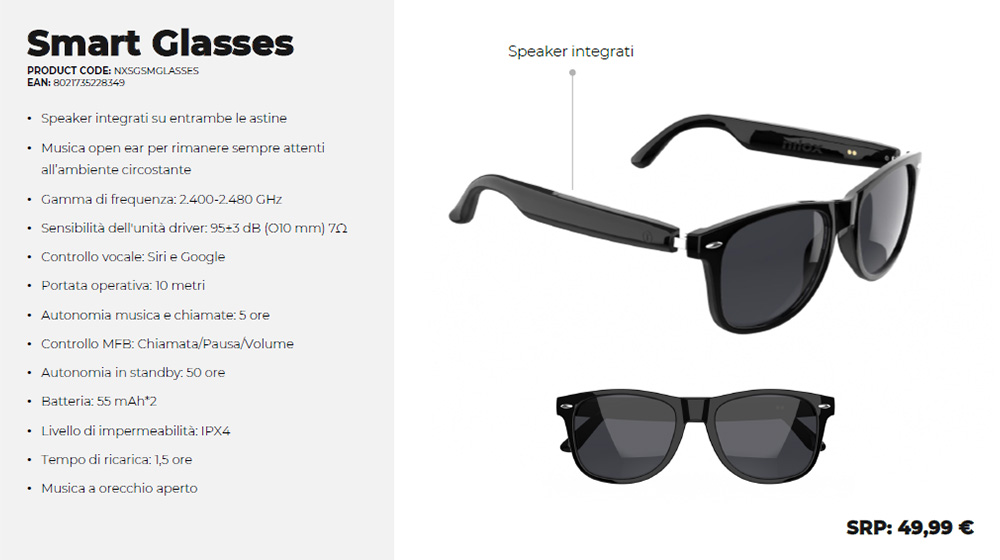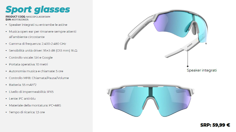 Nilox inserisce nel proprio portfolio una nuova collezione di occhiali da sole con speaker integrato, ampliando la proposta di accessori wearable per l’outdoor sport. La linea comprende due modelli sportivi, uno lifestyle e uno lifestyle con videocamera integrata.